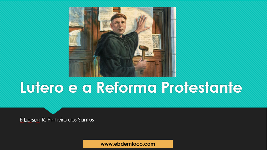 Nesse slide você vai poder ministrar uma aula completa sobre a Reforma Protestante. É abordado os eventos do nascimento à morte de Lutero. Além do mais, você irá ministrar sobre os Cinco Solas.